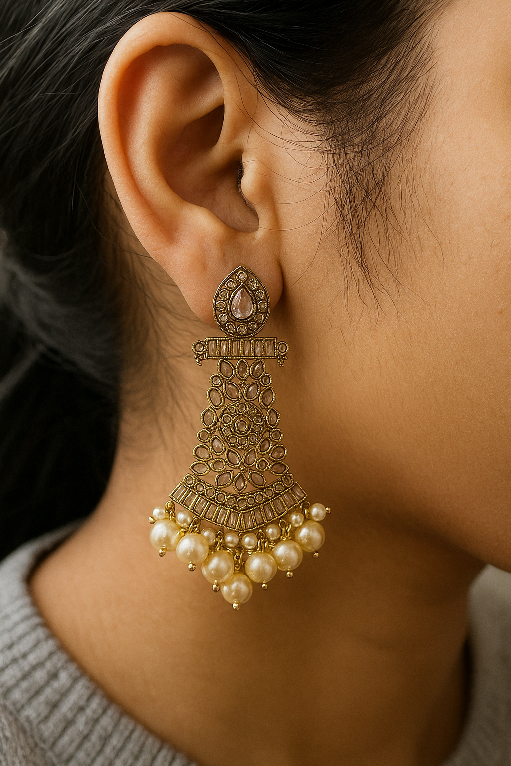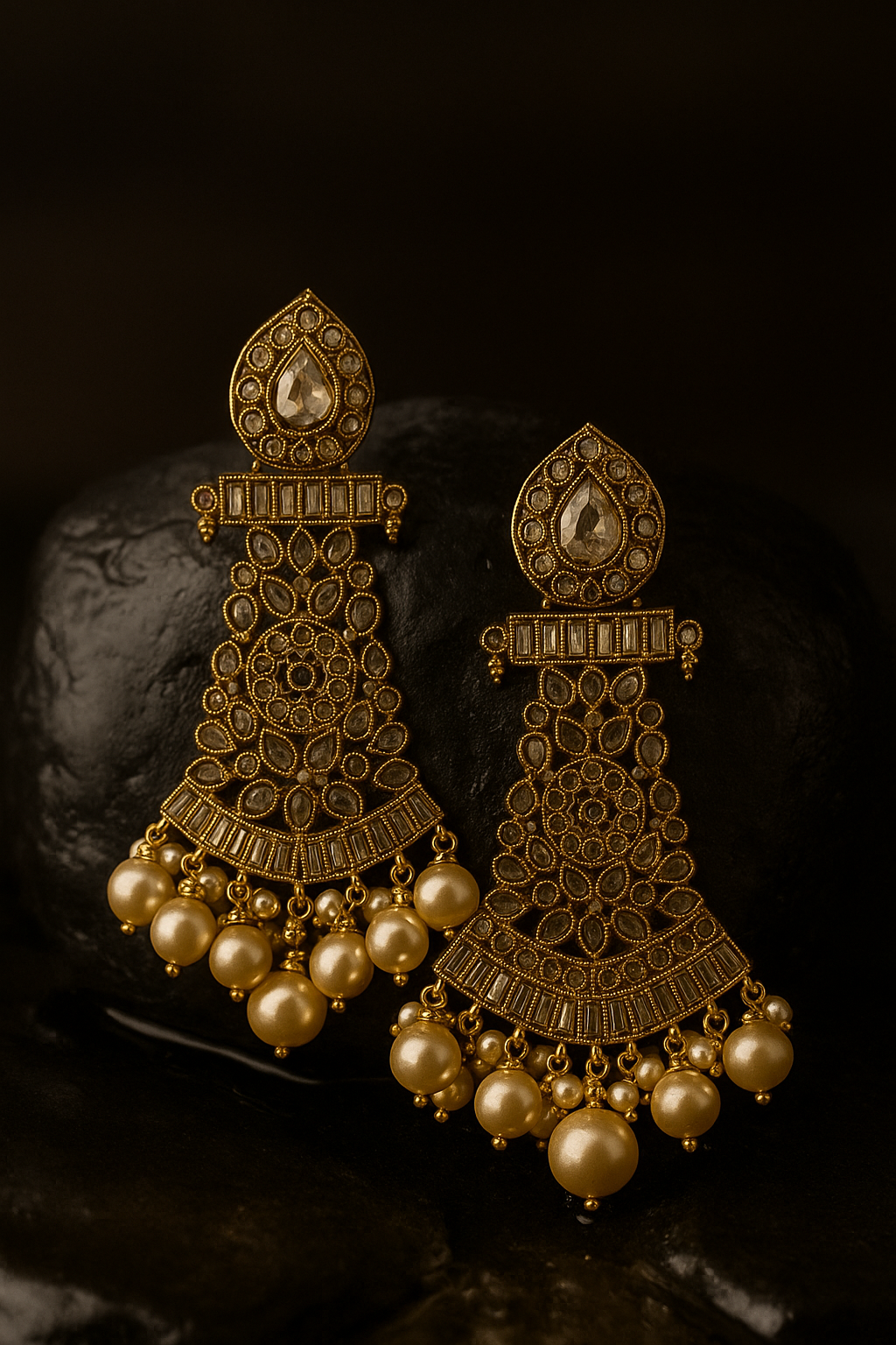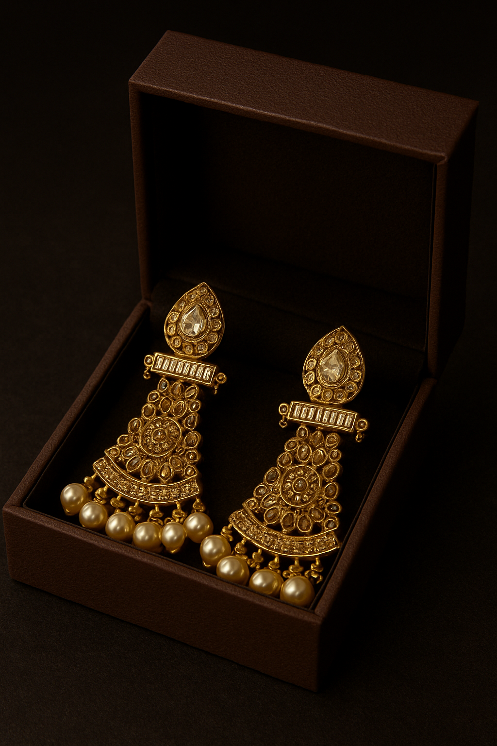 Royal Heritage: Authentic antique gold-tone with Polki/Kundan artistry.